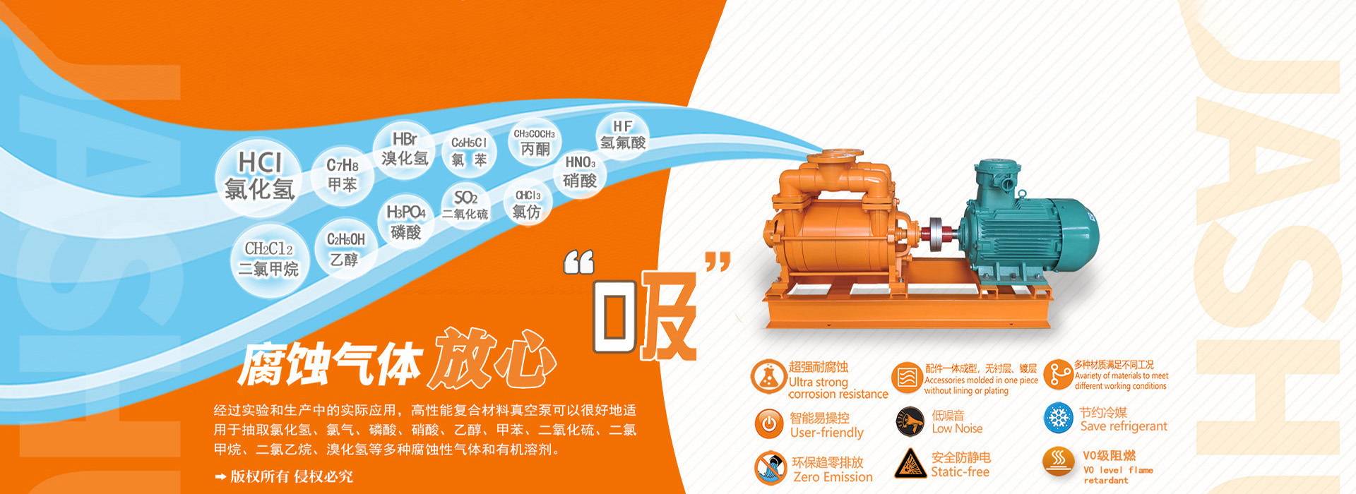 淄博華舜耐腐蝕真空泵有限公司主要生產(chǎn)各種型號和規(guī)格的水噴射泵、耐酸泵、耐酸真空泵等產(chǎn)品,是一家集科研開發(fā)、設(shè)計咨詢、生產(chǎn)、銷售、服務(wù)于一體,利用新型高性能復(fù)合材料,專業(yè)生產(chǎn)耐腐蝕液環(huán)真空泵的國家高新技術(shù)企業(yè), 坐落于“中國泵業(yè)名城”---山東省淄博市博山區(qū),公司通過了ISO9001質(zhì)量體系認(rèn)證。公司獨(dú)立研發(fā)的具有多項自主知識產(chǎn)權(quán)的專利產(chǎn)品-耐腐蝕系列水環(huán)式真空泵,通過了省級科技成果鑒定,處于“國際先進(jìn)水平”。 產(chǎn)品過流部件采用三大系列高性能復(fù)合材料(HS-V130、HS-V110、HS-V80)一體成型,耐腐蝕范圍廣、無襯層不脫落、節(jié)能效率高、運(yùn)行可靠、環(huán)保節(jié)水、 體積小、重量輕、使用壽命長等特點(diǎn)。